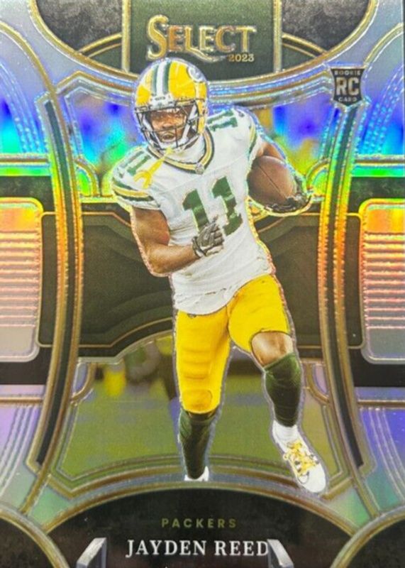 This card is 1 of 119 Jayden Reed's card variations in the 2023 Select set being tracked by Sports Card Investor, including Club Level, Concourse, Suite Level, Club Level Black & Gold Die-Cut, and Club Level Black & Green Die-Cut.