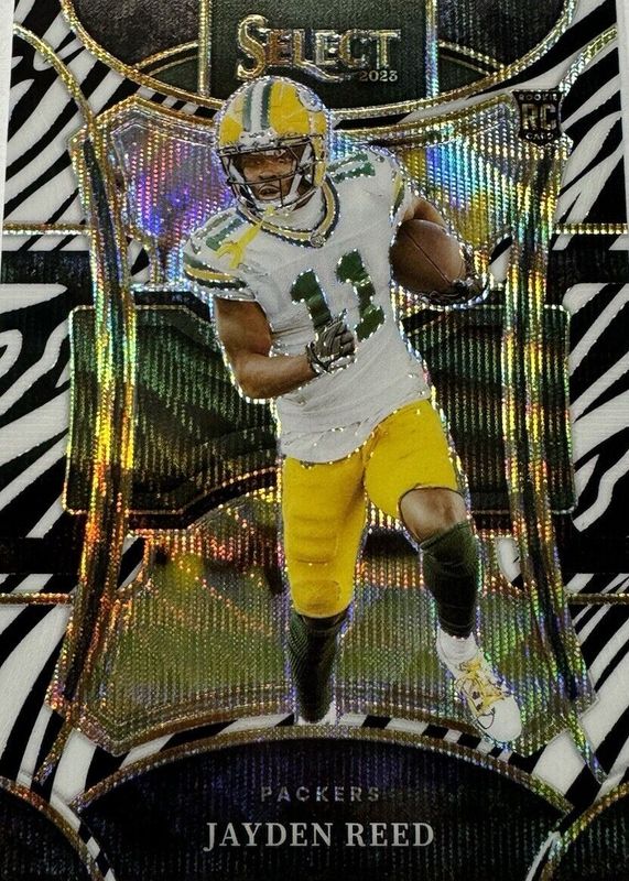 The Jayden Reed 2023 Select #434 Suite Level Zebra /(SSP) Rookie card in Raw condition has not changed in price in the last 30 days and was last sold for $31.00 .
