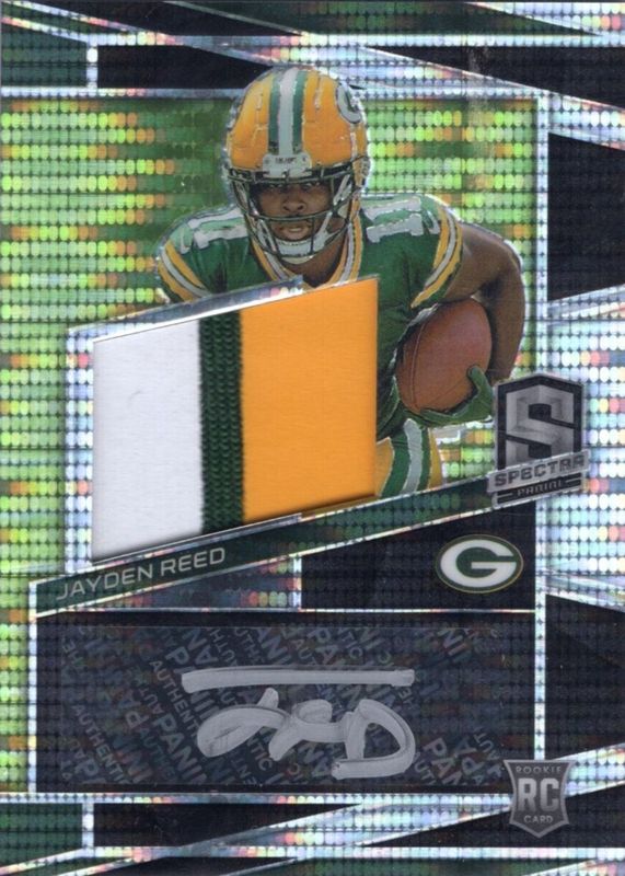 Jayden Reed 2023 Spectra #218 Rookie Patch Auto - Neon Black Light /10 RAW Price Guide