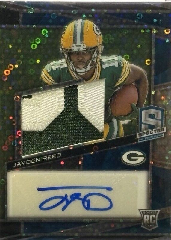 2023 Panini Spectra Jayden Reed RC Blue Neon Patch Auto 49/50 #218 Packers