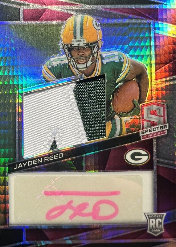 Recent Sales of Jayden Reed 2023 Spectra #218 Rookie Patch Auto - Neon Pink /25 Raw
