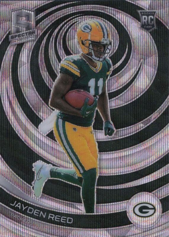 The Jayden Reed 2023 Spectra #146 Wave /11 Rookie card in Raw condition has not changed in price in the last 30 days and was last sold for $31.52 .