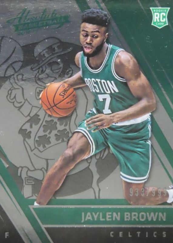 The Jaylen Brown 2016 Absolute #162 Base /999 Rookie card in Raw condition has moved up $4.50 (+39.1%) in the last 30 days and was last sold for $16.00 .
