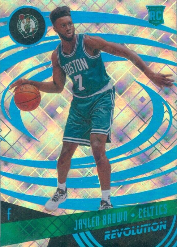 The Jaylen Brown 2016 Revolution #107 Cosmic /100 Rookie card in Raw condition has not changed in price in the last 30 days and was last sold for $38.50 .