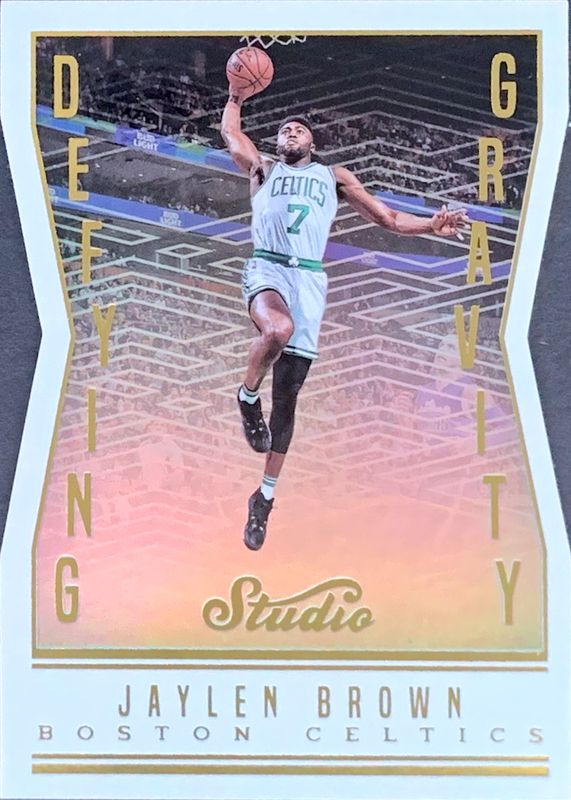 The Jaylen Brown 2016 Studio #DG-JB Defying Gravity Die-Cut /(SSP) Rookie card in Raw condition has not changed in price in the last 30 days and was last sold for $15.53 .