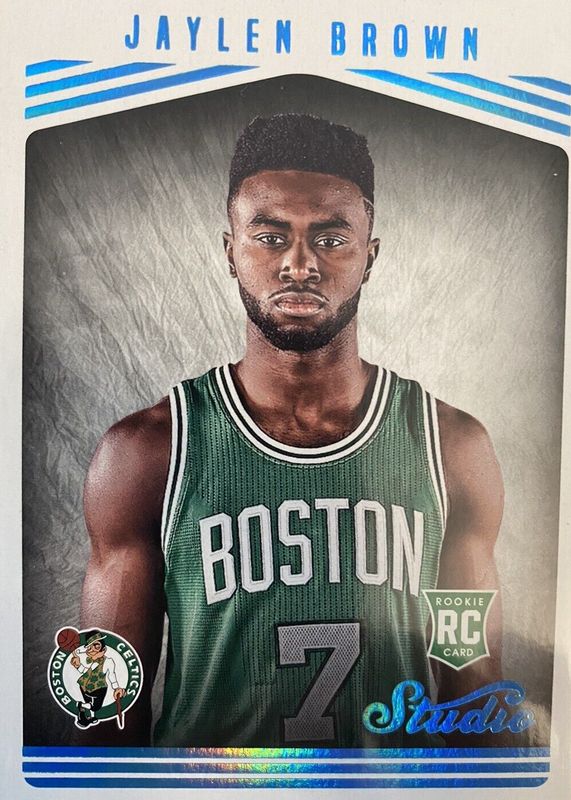 The Jaylen Brown 2016 Studio #188 Studio Edition - Glossy Rookie card in Raw condition has not changed in price in the last 30 days and was last sold for $20.00 .