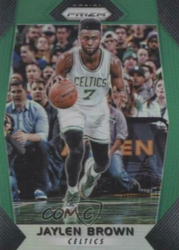 The Jaylen Brown 2017 Prizm #11 Green card in Raw condition has not changed in price in the last 30 days and was last sold for $5.44 .
