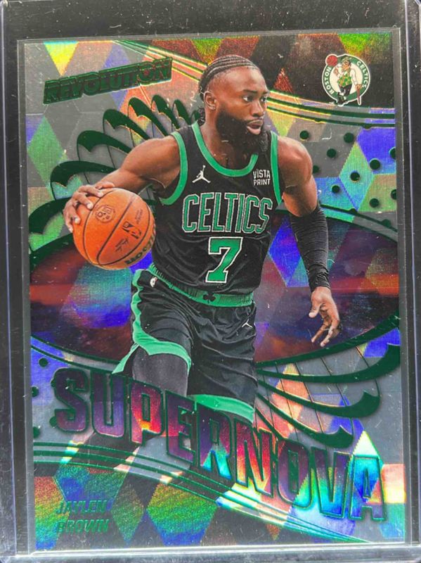 The Jaylen Brown 2024 Revolution #1 Supernova - Cubic /50 card is 1 of 65 Jaylen Brown's card variations in the 2024 Revolution set being tracked by Sports Card Investor, including Base, Astro, Blue Storm, Chinese New Year, and Fractal.