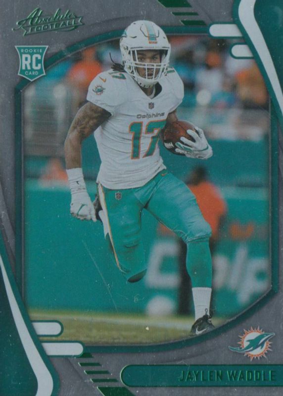 The Jaylen Waddle 2021 Absolute #106 Base Rookie card in Raw condition has moved down -$0.40 (-28.8%) in the last 30 days and was last sold for $0.99 .