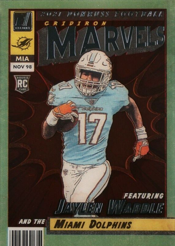 2021 Clearly Donruss Jaylen Waddle Miami Dolphins RC Rookie Gridiron Marvels J1S
