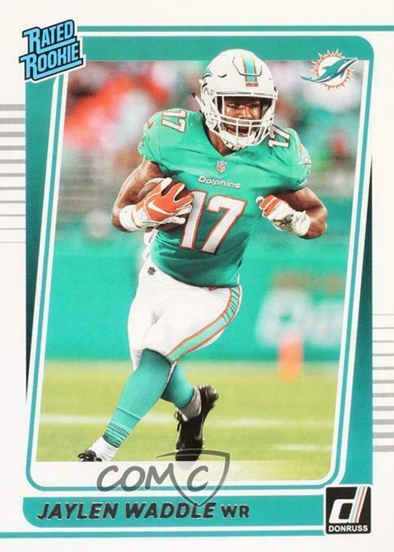 This card is 1 of 26 Jaylen Waddle's card variations in the 2021 Donruss set being tracked by Sports Card Investor, including Base, No Name, Portrait, Press Proof Blue, and Press Proof Bronze.