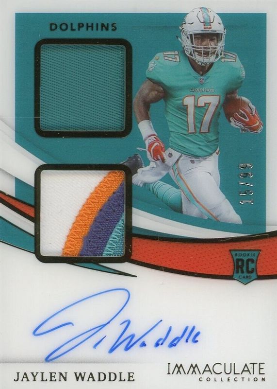 2021 Jaylen Waddle Immaculate 3 Color Dual Jersey Patch Auto 85/99 RPA Dolphins