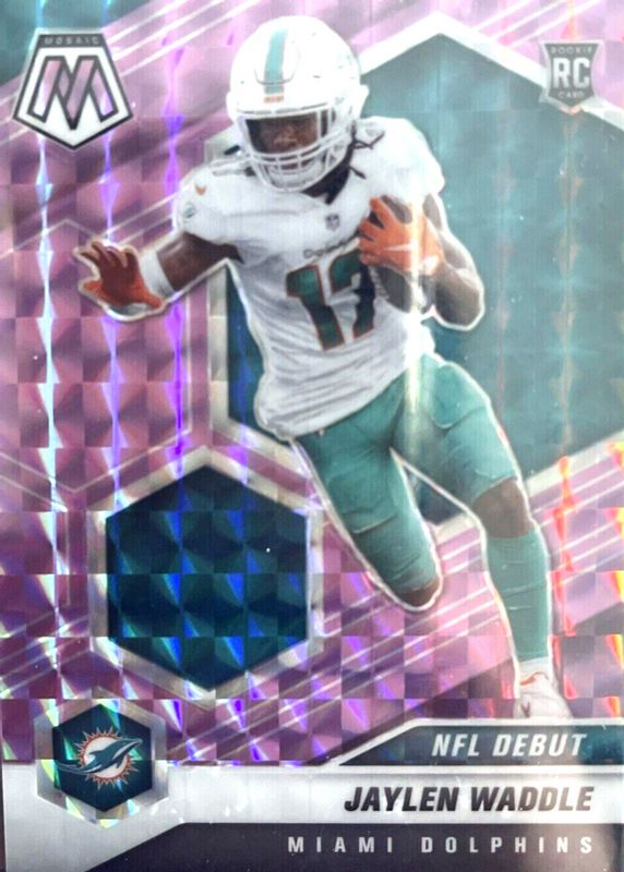 The Jaylen Waddle 2021 Mosaic #248 NFL Debut - Purple /49 Rookie card in Raw condition has not changed in price in the last 30 days and was last sold for $14.50 .
