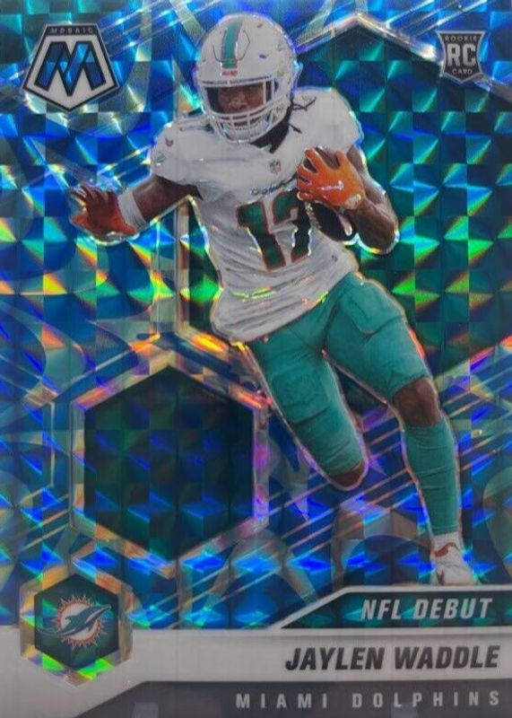 The Jaylen Waddle 2021 Mosaic #248 NFL Debut - Reactive Blue Rookie card in Raw condition has moved down -$0.37 (-27.2%) in the last 30 days and was last sold for $0.99 .