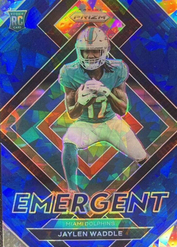 2021 Panini Prizm - Emergent Jaylen Waddle #E-8 Blue Ice Prizm /99 (RC)