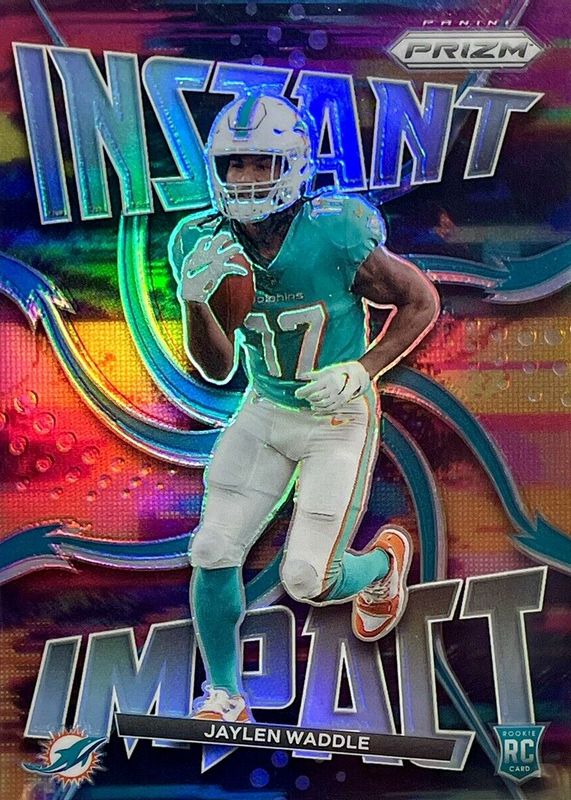 The Jaylen Waddle 2021 Prizm #II-9 Instant Impact /(SSP) Rookie card in Raw condition has not changed in price in the last 30 days and was last sold for $29.99 .