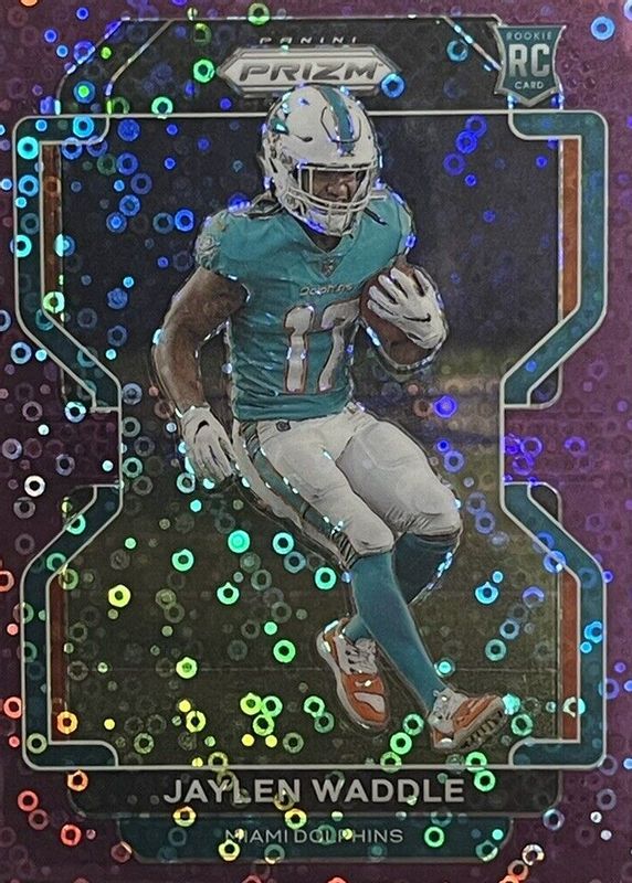 This card is 1 of 81 Jaylen Waddle's card variations in the 2021 Prizm set being tracked by Sports Card Investor, including Base, Disco, Green, Green Ice, and Lazer.