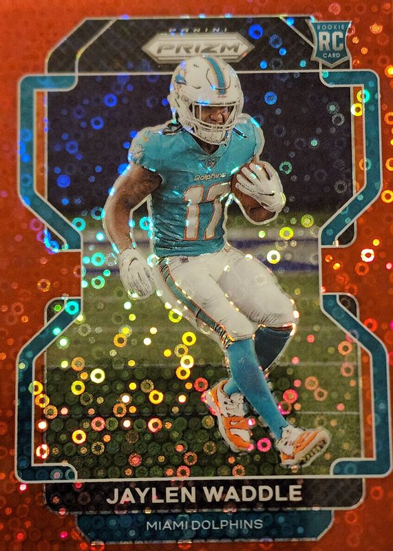 2021 PRIZM ROOKIE NO HUDDLE RED DISCO MIAMI JAYLEN WADDLE RC /50 Q1114