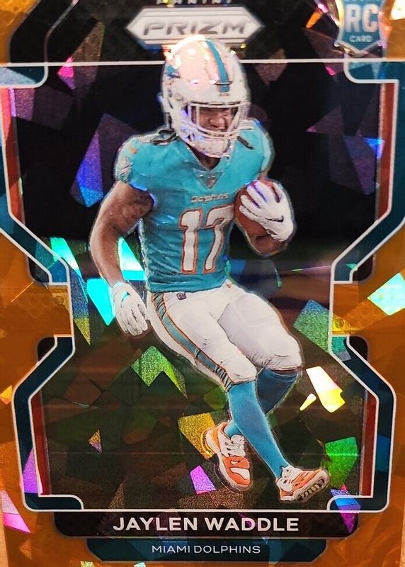 2021 Prizm NFL Fanatics Orange Cracked Ice 338 Jaylen Waddle Rookie SP Dolphins