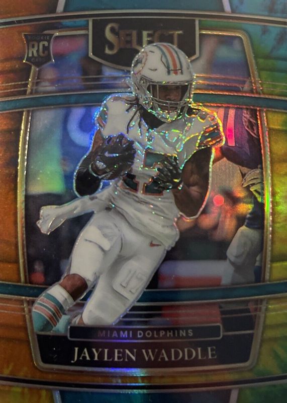 This card is 1 of 169 Jaylen Waddle's card variations in the 2021 Select set being tracked by Sports Card Investor, including Club Level, Concourse, Field Level, Premier Level, and Club Level Black & Gold Die-Cut.
