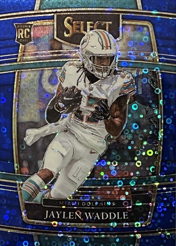 2021 SELECT FOOTBALL 48 JAYLEN WADDLE DISCO BLUE /25 CONCOURSE DOLPHINS SSP RC