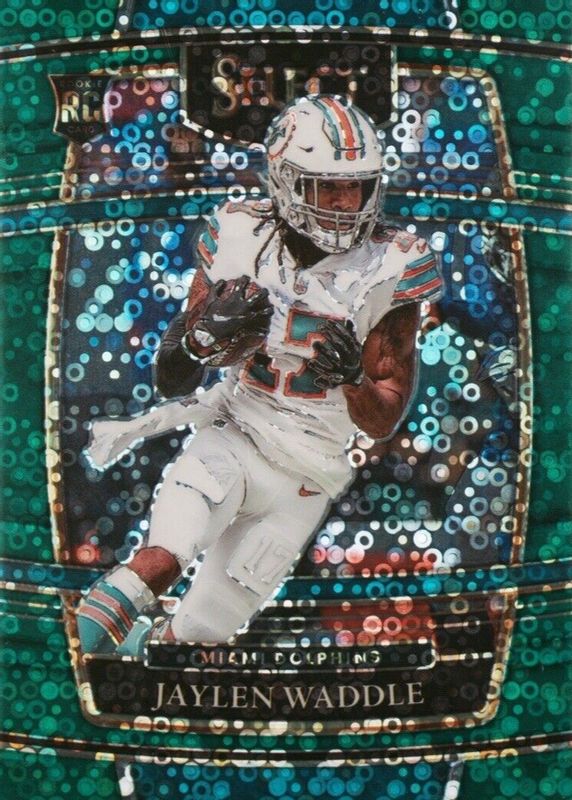 The Jaylen Waddle 2021 Select #48 Concourse Green Disco /5 Rookie card in Raw condition has not changed in price in the last 30 days.