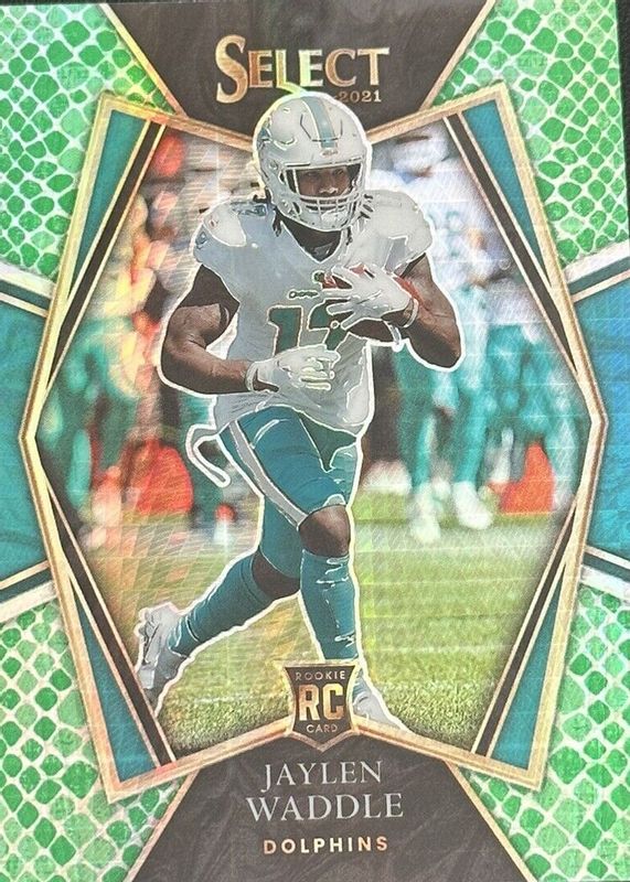 This card is 1 of 169 Jaylen Waddle's card variations in the 2021 Select set being tracked by Sports Card Investor, including Club Level, Concourse, Field Level, Premier Level, and Club Level Black & Gold Die-Cut.