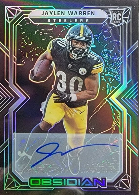 The Jaylen Warren 2022 Obsidian #167 Rookie Autographs (/199) card in Raw condition has not changed in price in the last 30 days and was last sold for $30.40 .