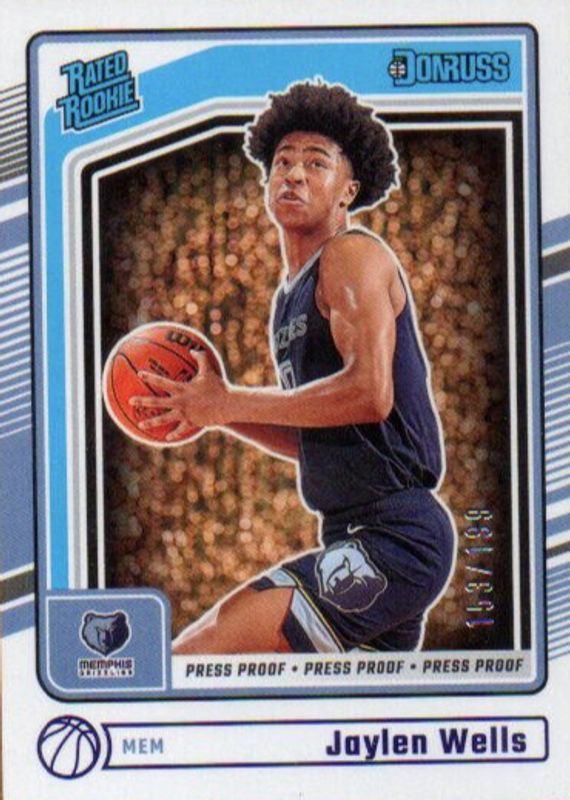 The Jaylen Wells 2024 Donruss #245 Press Proof Purple /199 Rookie card in Raw condition has not changed in price in the last 30 days and was last sold for $0.99 .