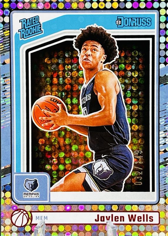 This card is 1 of 69 Jaylen Wells' card variations in the 2024 Donruss set being tracked by Sports Card Investor, including Base, Disco, Holo Green Laser, International, and International Holo Maroon Laser.