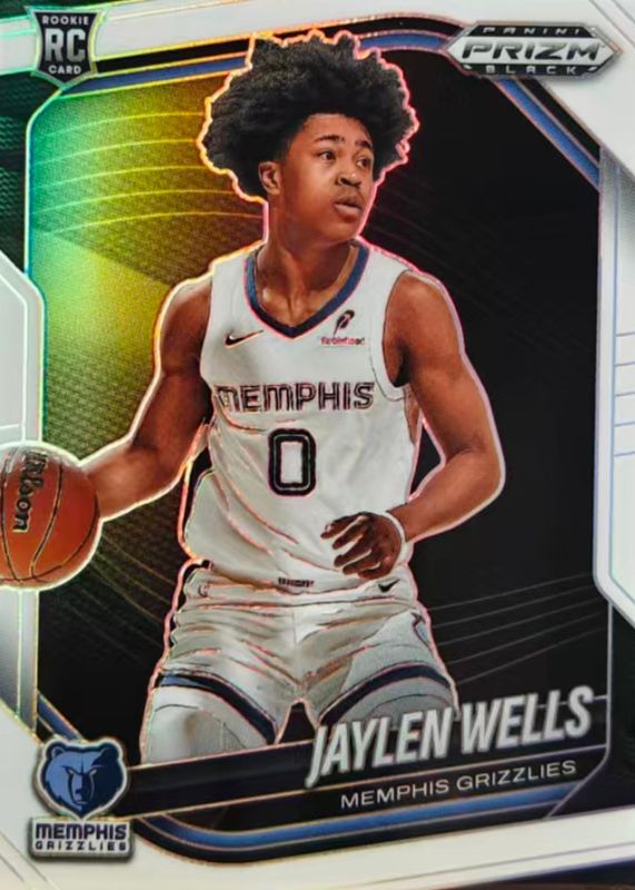 2024-25 Panini Prizm Black Jaylen Wells #34 White RC Rookie Grizzlies /175