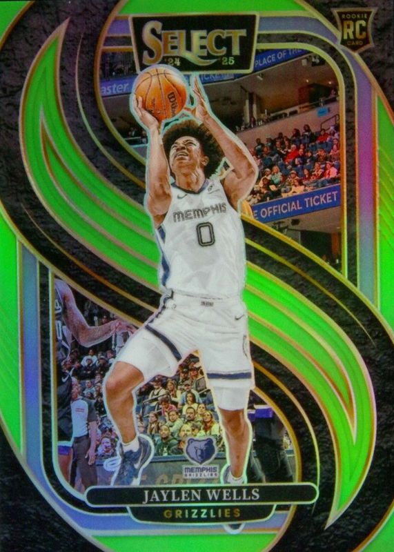 2024-25 Panini Select Jaylen Wells #188 RC Rookie Premier Neon Green /75