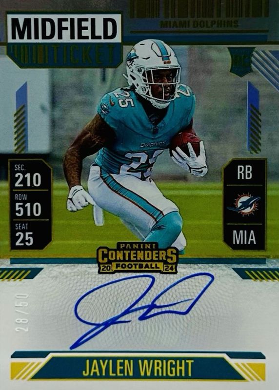 2024 Panini Contenders Jaylen Wright Rookie Auto /50 Midfield Ticket #132 Phins