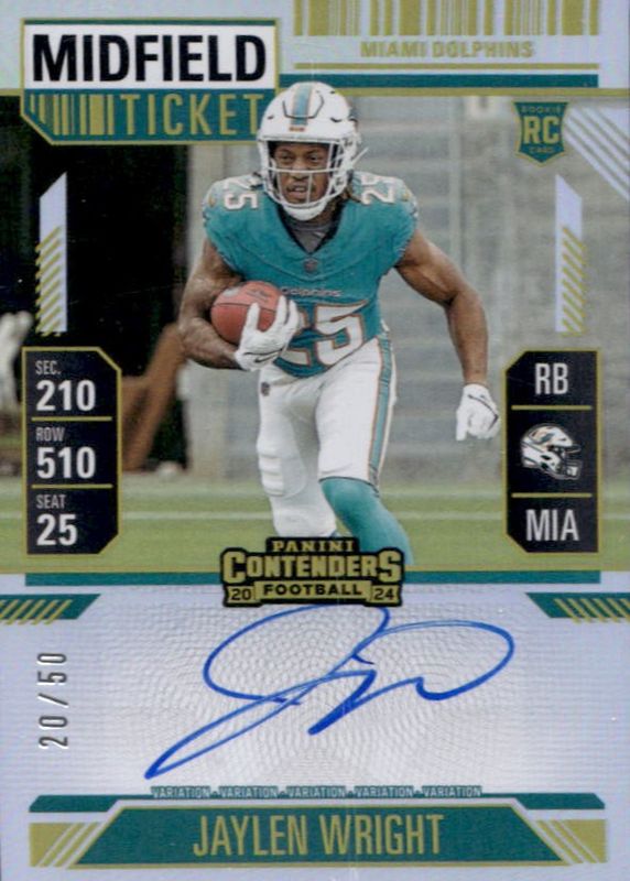 JAYLEN WRIGHT 2024 CONTENDERS MIDFIELD TICKET ROOKIE VAR RC AUTO /50 Q3562
