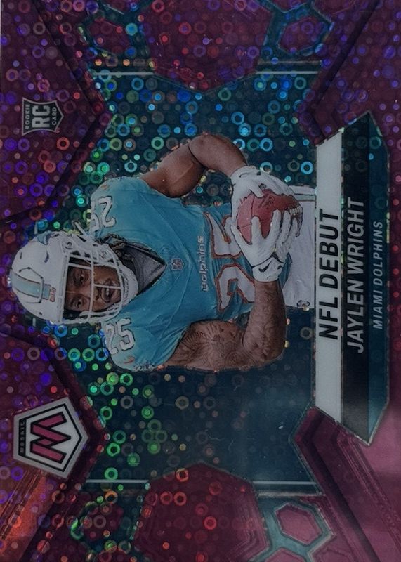 The Jaylen Wright 2024 Mosaic #280 NFL Debut - No Huddle Pink /20 Rookie card in Raw condition has not changed in price in the last 30 days and was last sold for $20.00 .