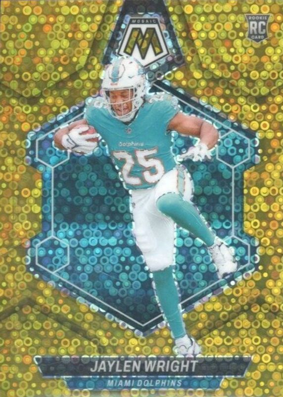 The Jaylen Wright 2024 Mosaic #383 No Huddle Gold /10 Rookie card in Raw condition has not changed in price in the last 30 days and was last sold for $61.00 .
