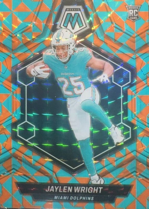 The Jaylen Wright 2024 Mosaic #383 Tessellation /15 Rookie card in Raw condition has not changed in price in the last 30 days and was last sold for $40.00 .
