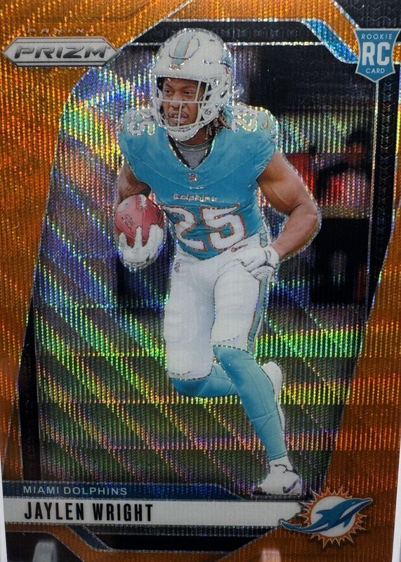 The Jaylen Wright 2024 Prizm #348 Orange Wave /60 Rookie card in Raw condition has not changed in price in the last 30 days and was last sold for $4.25 .