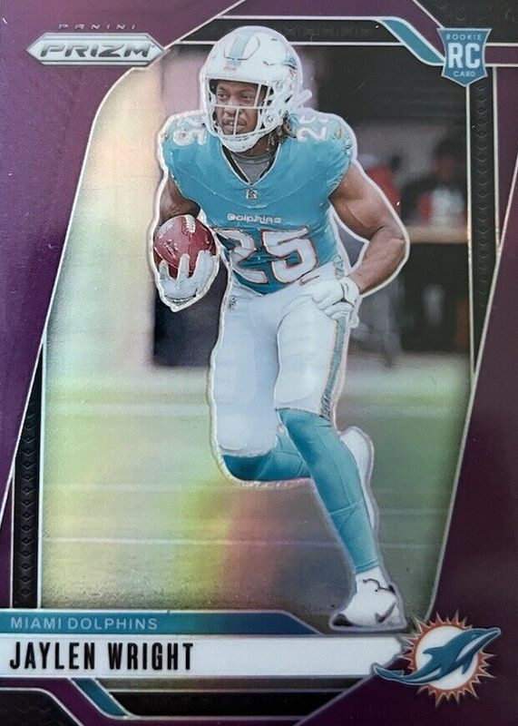 Jaylen Wright 2024 Panini Prizm Purple Prizm /125 Rookie SSP #348 Dolphins