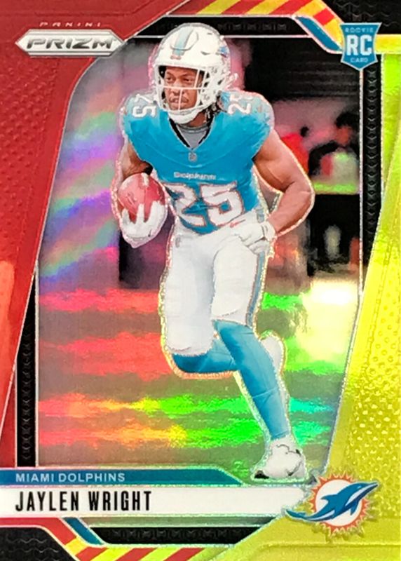 2024 Panini Prizm Jaylen Wright RC #348 Dolphins Red and Yellow Refractor /44 HD