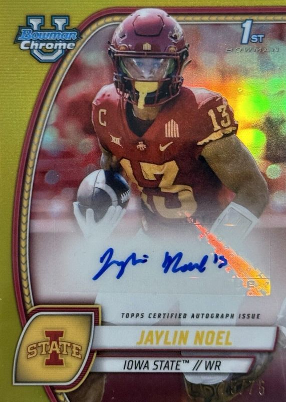 JAYLIN NOEL 2024 BOWMAN CHROME UNIVERSITY PROSPECT YELLOW REFRACTOR AUTO 60/75