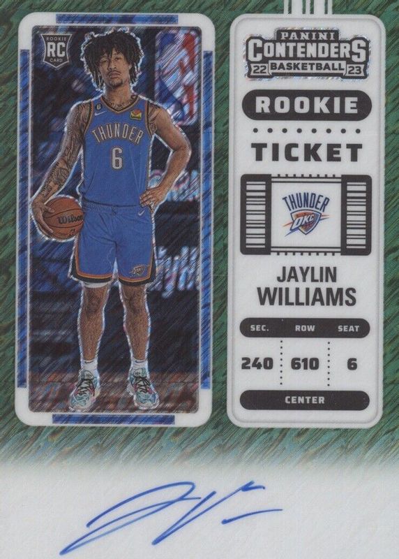 Jaylin Williams 2022 Contenders #138 Rookie Ticket Auto - Premium Green Shimmer RAW Price Guide