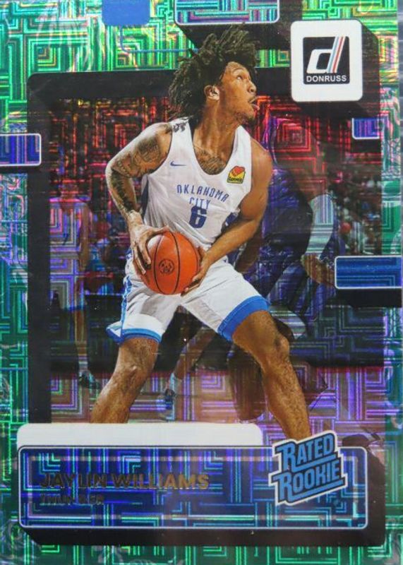 This card is 1 of 43 Jaylin Williams' card variations in the 2022 Donruss set being tracked by Sports Card Investor, including Base, Choice, Holo Green Laser, Holo Red & Gold Laser, and Press Proof Silver.