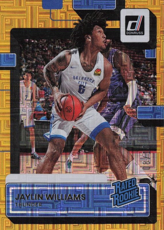 The Jaylin Williams 2022 Donruss #241 Choice Gold /10 Rookie card in Raw condition has not changed in price in the last 30 days and was last sold for $47.00 .