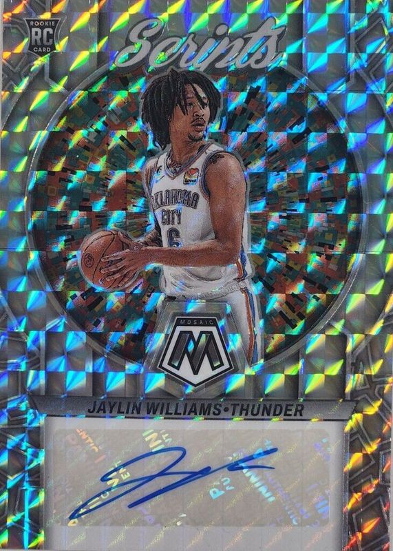 The Jaylin Williams 2022 Mosaic #RS-WIL Rookie Scripts card in Raw condition has moved up $13.96 (+278%) in the last 30 days and was last sold for $18.99 .