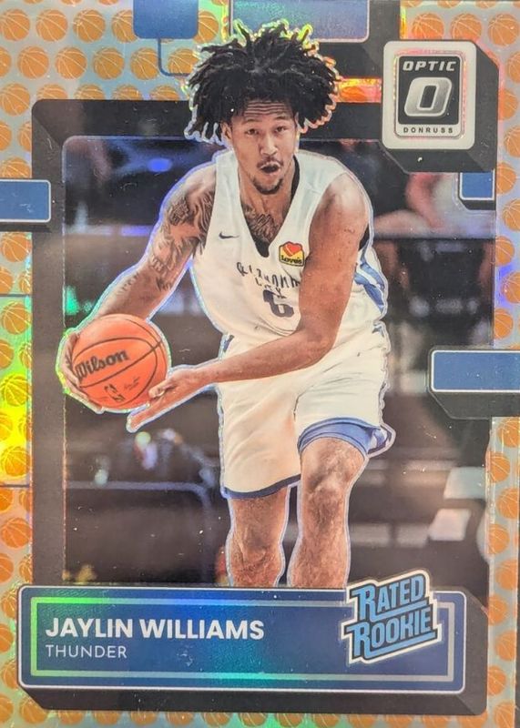 The Jaylin Williams 2022 Optic #246 Basketballs /(SSP) Rookie card in Raw condition has not changed in price in the last 30 days and was last sold for $4.25 .