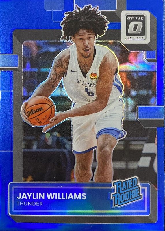 The Jaylin Williams 2022 Optic #246 Blue /49 Rookie card in Raw condition has not changed in price in the last 30 days and was last sold for $26.00 .