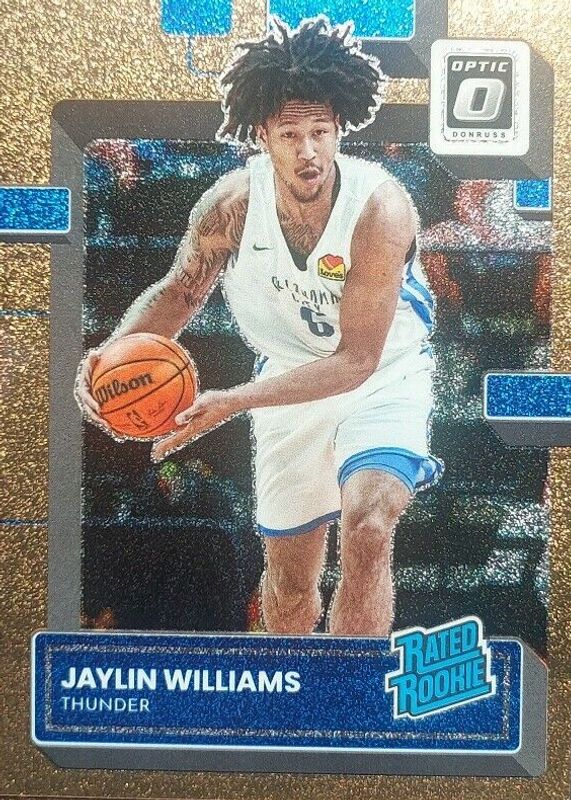 This card is 1 of 77 Jaylin Williams' card variations in the 2022 Optic set being tracked by Sports Card Investor, including Base, Checkerboard, Choice, Choice Red & Green, and Fast Break.