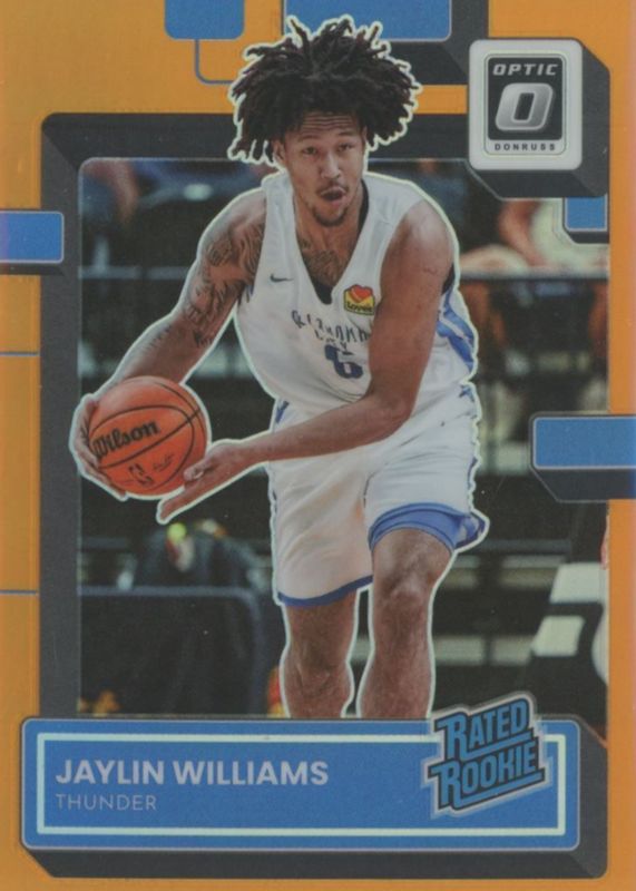 The Jaylin Williams 2022 Optic #246 Orange /199 Rookie card in Raw condition has not changed in price in the last 30 days and was last sold for $1.25 .