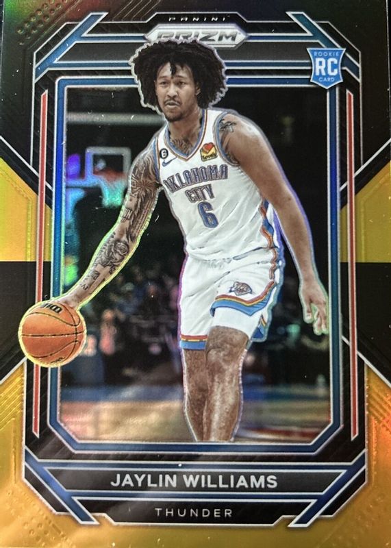 The Jaylin Williams 2022 Prizm #247 Black Gold /5 Rookie card in Raw condition has not changed in price in the last 30 days and was last sold for $127.50 .